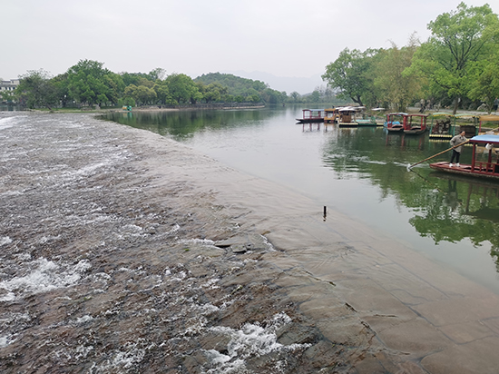 数百年后在兴安灵渠的北渠渠畔,却流传着一对卖豆芽的老翁妪,每天上演“曲水流盆”的佳话。灵渠的渠边有个水泊村,村里住着一个姓文的落第秀才,因为读过几句诗,又非常崇信上巳节,就常戏称北渠为“曲水”。老秀才屡试不第,早就失却了为官出仕的豪情壮志,每日以到水街卖自产的绿豆芽维持生计,幸好膝下并无儿女,仅与老伴相伴度日。每日,老公公卖完豆芽,便要在街边小酌二盅,直要喝得个面红耳赤,醉气醺醺方才作罢。而要回家,又懒得去挑那盛豆芽的大木桶盆,就从北陡渠口分水亭边,将木桶木盆放下去,任渠水带走。老翁跟随在后,一边走,一边叫:“曲水流觞啦,曲水流觞啦。”天天如此,老婆婆虽不知“流觞”为何物,但知道听到吆喝声就得赶紧到渠边收捞水中木盆,否则就会错过水头。于是她捞出木盆后,也会高声回应一声:“收到木盆啦,收到木盆啦”。随即,醉醺醺的老翁与颤巍巍的老妪在渠边嬉闹成一团,成了一幅特殊的风景画,而曲水流盆的典故,也成了北渠的代名词。