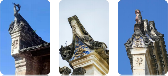 江东村东、南、北三面为群山环抱,其中北边倚靠的一列山岭最为雄峻挺拔,颇有龙腾之势,名曰“龙山”,似一道天然屏障,守护着古村的安宁,也衬托着古村的阳刚。龙山南麓有宋代参知政事唐介衣冠冢,彰显出此地的非凡气象。龙山的山垭还有犀牛石、酒米石等奇观异景,以及相关的神奇传说。村西是湘江的上源海阳河,河水晶 莹澄澈,似一条碧绿的丝带,静静地在村前飘过。村庄四周,与民居相连的是一片平坦的田畴,恰似一张巨幅绣花地毯。绿色的玉米,金色的柑橘,还有紫红相间的辣椒,是点缀在地毯上的斑斓纹饰。江东村现存清代古樟树8株,古银杏树128棵,葱茏荫郁,分布于古民居群的各个角落,为村里毓水培风。金秋时节,银杏树黄,飒爽英姿,如兵至城中,满城尽带黄金甲,凛然有威风,波澜壮阔又从容自如,银杏树顺风贴着地面卷洞,铺成一地锦绣。