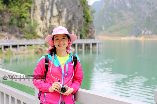 2017年4月22日,黄文秀与记者一起在凌云县采访时留下的照片 记者 陈 强 摄