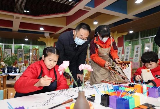1月29日,在新春佳节即将到来之际,自治区党委书记、自治区人大常委会主任刘宁来到南宁市社会福利院创意馆,仔细观摩儿童绘画、写字,详细了解孩子们的康复、学习、生活情况。黄克 摄